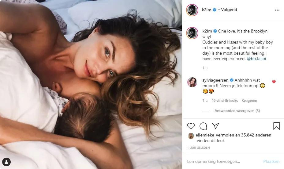 Een kleine twee weken geleden werd Kim Feenstra's eerste kindje Brooklyn Baby geboren. Op Instagram schreef het 35-jarige model bij de eerste babyfoto: "Knuffels en kusjes met mijn baby jongetje in de ochtend (en de rest van de dag) is het mooiste gevoel dat ik ooit heb gehad."