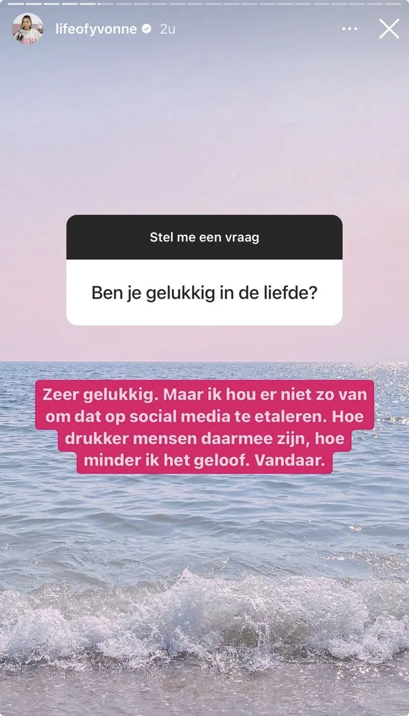 Yvonne Coldeweijer is dolgelukkig met haar huidige vriend, dat laat de roddelvlogger weten in een Q&A op haar Instagram.
