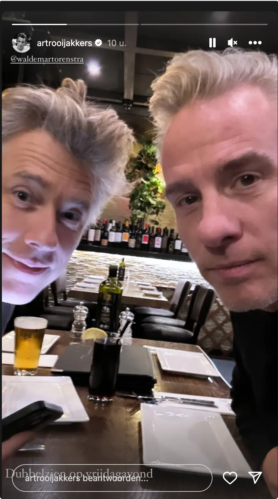 De Expeditie presentator plaatst op zijn Instagram Story een selfie van hem en acteur Waldemar Torenstra. Bij de foto schrijft hij: "Dubbel zien op de vrijdagavond."