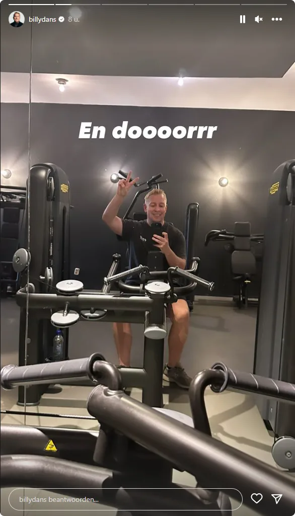Billy plaatst vrijdag in zijn Instagram Stories een aantal beelden. Daarop is duidelijk te zien dat hij al flink is afgevallen. Hij schrijft bij een foto vanuit de sportschool: "En doooorrr!"