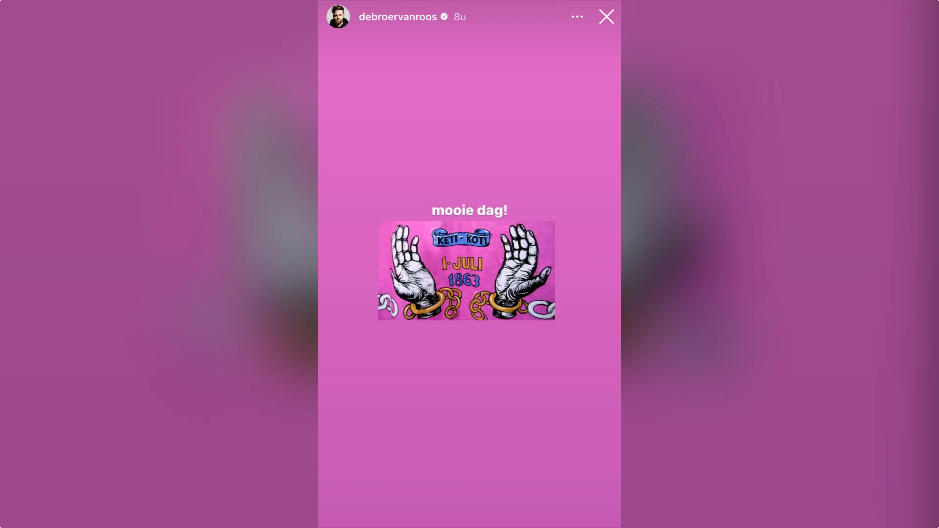 "Vandaag is Dia de Emancipacion Keti Koti", schrijft politicus Sylvana Simons op Instagram. "Reden tot herdenking en viering van de (papieren) afschaffing van de slavernij in 1863. Have a good one!"