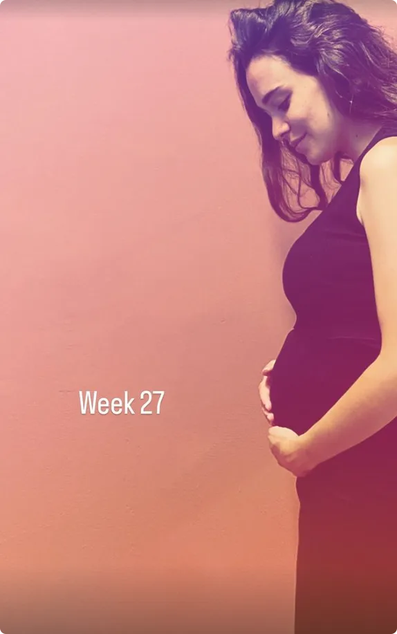 Davide Heijmans, de echtgenote van Thierry Baudet showt trots haar babybuik op haar Instagram story. Davide is inmiddels 27 weken zwanger.