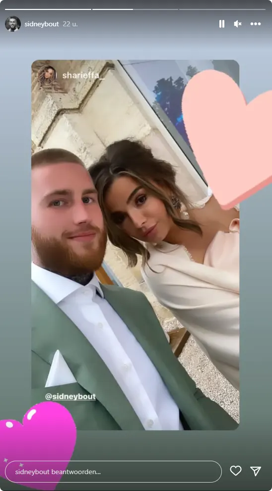 Sidney is inmiddels al een tijdje gelukkig met Sharieffa. En nu zijn de twee tortelduifjes, man en vrouw! Bij een prachtig kiekje schrijft Sidney: "She said yes!"