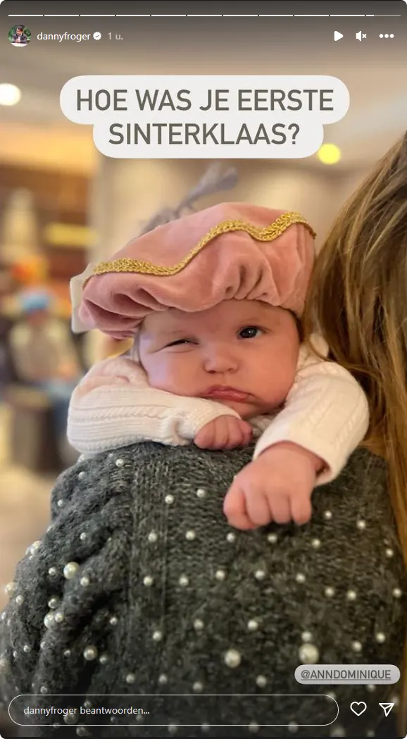 Danny Froger deelt zondag op zijn Instagramverhaal dat hij Sinterklaas aan het vieren is met zijn gezin. Voor dochter Scottie was het haar allereerste pakjesavond.