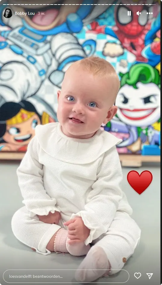 Loes post een foto van de kleine Bobby Lou, die inmiddels negen maanden is. Op de foto is te zien dat de baby sprekend op de zanger lijkt.