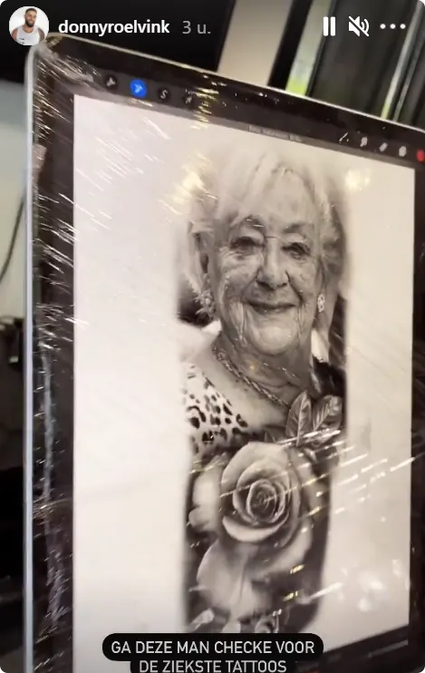 Donny Roelvink zet een prachtig eerbetoon op zijn lichaam. Zijn geliefde oma prijkt vanaf nu op zijn arm...