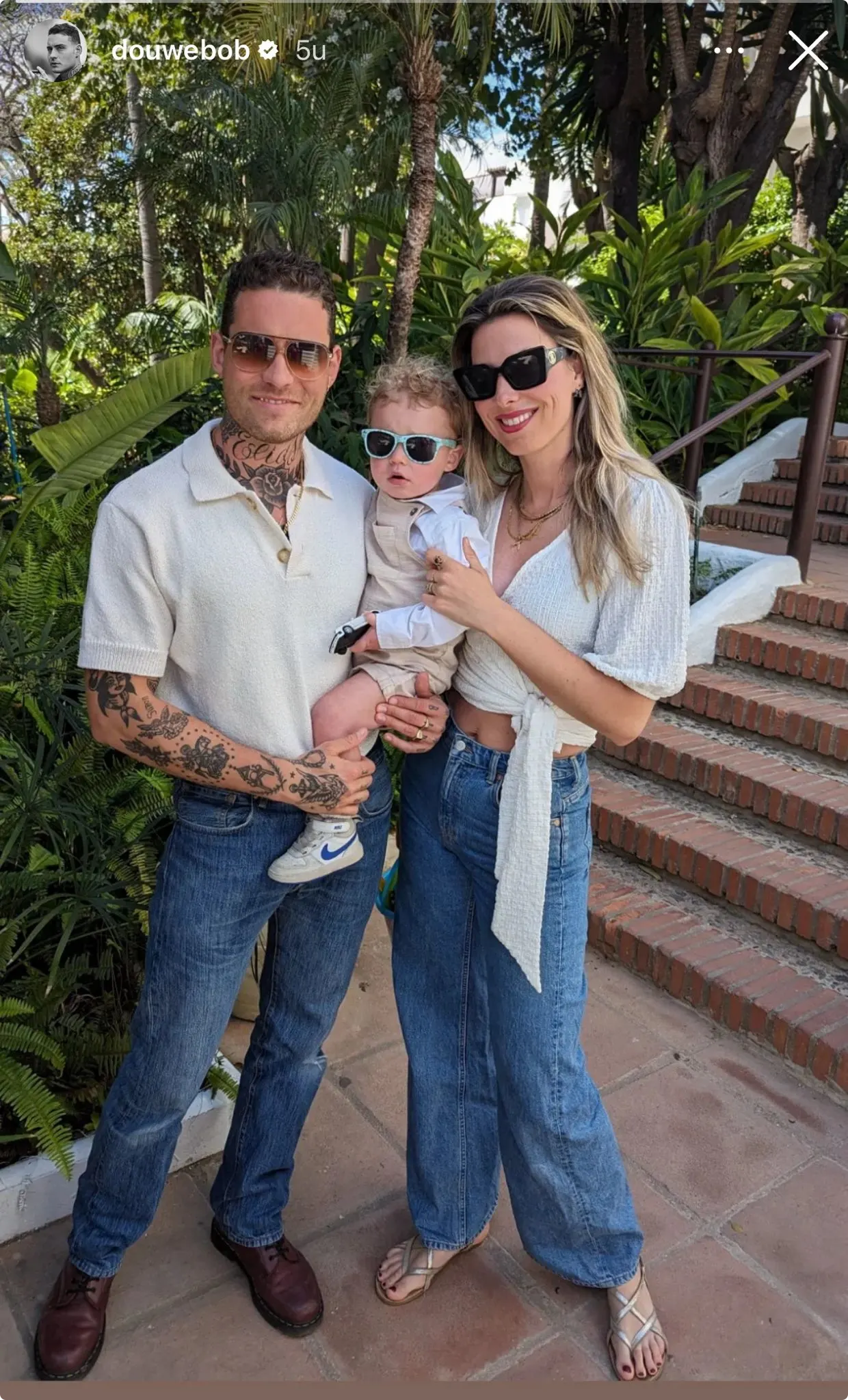 Douwe Bob geniet samen met zijn gezin van een zonovergoten vakantie. Reden genoeg om met zijn verloofde Anouk, die zich onlangs nog uitliet over hun huwelijk (zie video), en zoonlief Elias op de foto te gaan.