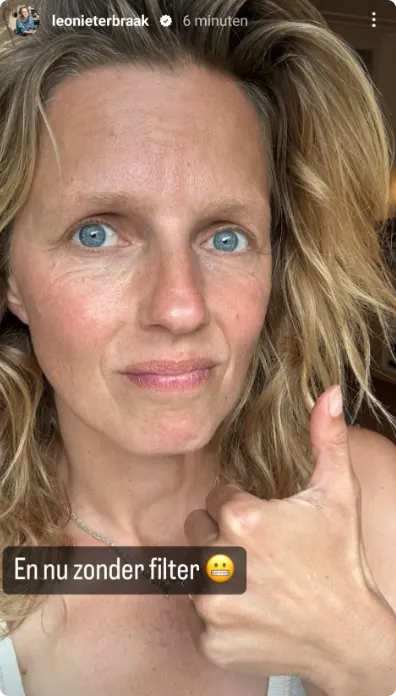 Leonie ter Braak laat de naakte waarheid zien. De presentatrice deelt op haar social media foto's van zichzelf zonder filter...
