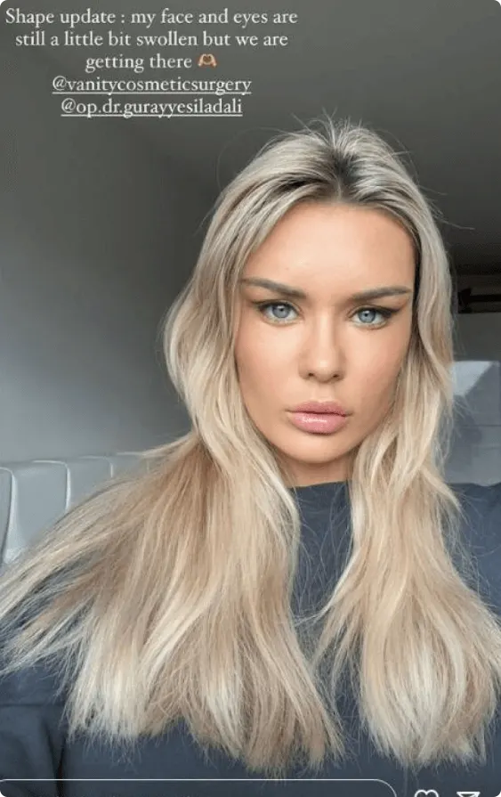 Zo schrijft Megan in haar volgende story: “Ik merk dat er veel mensen schrikken. Dus even voor de duidelijkheid: de foto die ik net heb gedeeld is nog niet het eindresultaat. Mijn gezicht is nog erg gezwollen en gespannen, dus het gaat er binnen een weekje minder heftig uitzien."