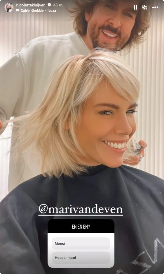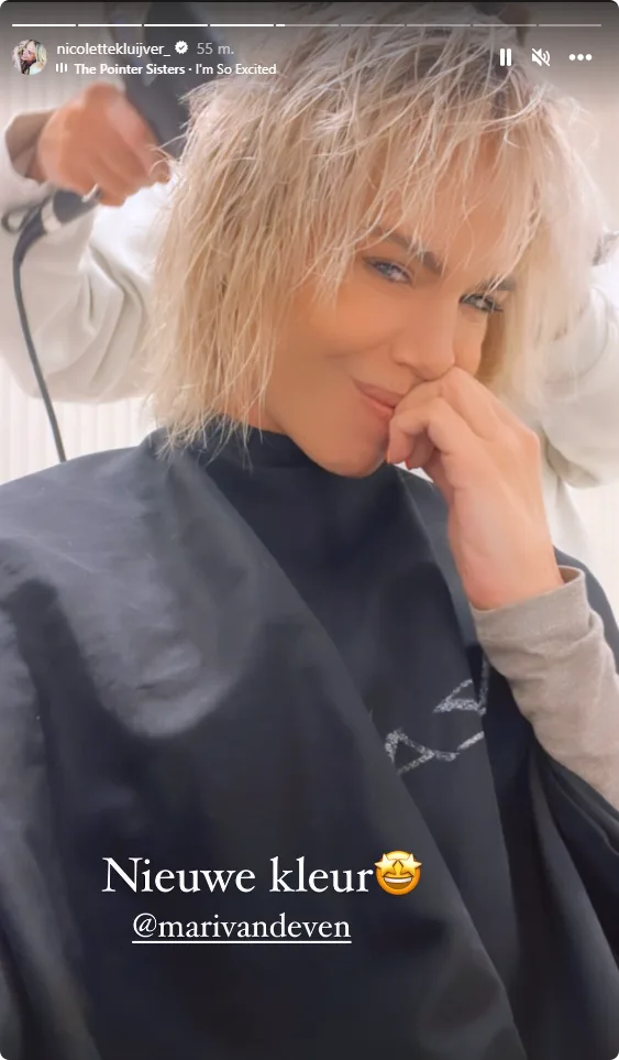Ze is naar haar goede vriend Mari geweest voor haar make-over. "De meester is aan het werk... Er is er maar één zoals hij, mijn lieve vriendje Mari van de Ven. Eindresultaat komt straks! #makeover #goodbyes #nietmeerneltijgervelblond", schrijft ze onder de video.