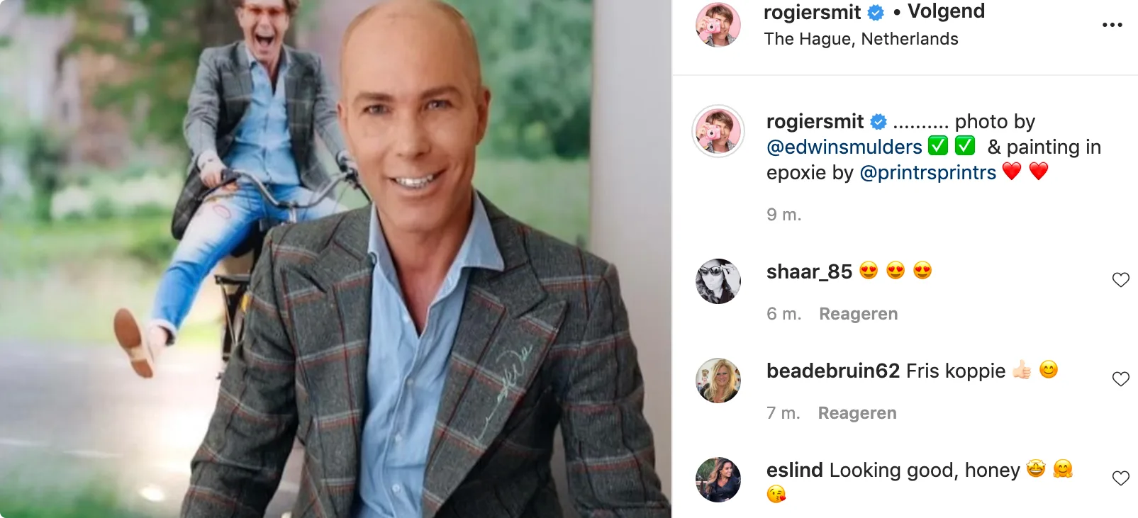Story-fotograaf Edwin Smulders heeft hem opnieuw op de gevoelige plaat vastgelegd en Rogier deelt het resultaat op Instagram. Zijn fans zijn nog altijd lyrisch over zijn metamorfose en reageren onder meer met: "Fris koppie", "Wow dit staat je zó goed Rogier", "Veel beter Rogier... die dooie cavia niet meer opdoen" en "Nu zie je pas hoe knap je eigenlijk bent. Je wordt niet afgeleid door de pruik."