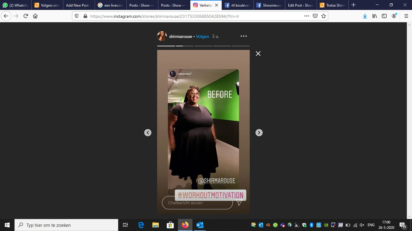 Rob de Nijs, die ook furore maakte in The Voice of Holland, deelt op zijn Instagram Stories hoe trots hij is op Shirma. "Deze prachtige dame begon met haar dieet en deed bijna elke dag een work-out. Ze verloor 50 kilo. Kan je dat geloven? 50 kilo!"