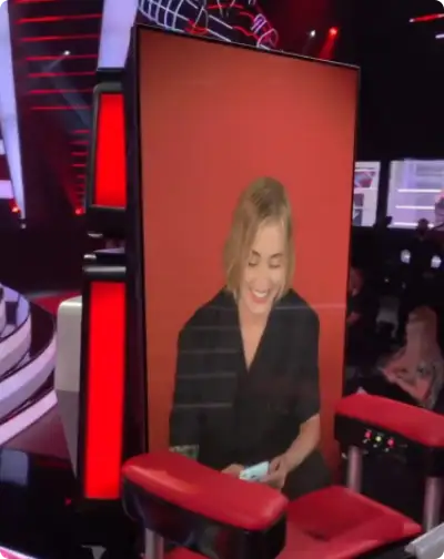 Anouk is bij de audities te zien via een videoscherm in haar rode Voice-stoel. Ali B. laat kort zien hoe dit er precies uitziet. Dit is bovenaan deze pagina te zien en voor de minder geduldige lezers zie je hieronder een screenshot.