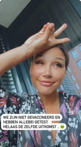 Waarschijnlijk na vele vragen van volgers verklaart ze even later nog: "Laatste feestje van het jaar is ons dus fataal geworden. We zijn niet gevaccineerd en hebben allebei getest. Helaas dezelfde uitkomst."