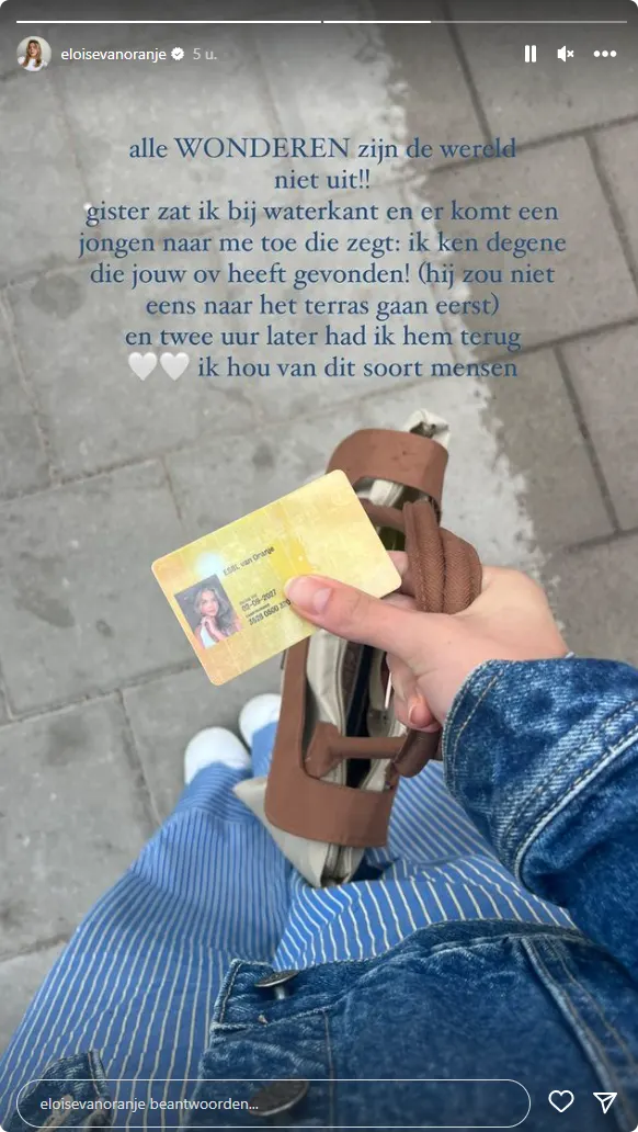 Eloise van Oranje bedankt op Instagram de eerlijke vinder van haar OV-chipkaart. De gravin was het pasje verloren, maar heeft hem nu weer terug, dat scheelt haar toch weer 7,50 euro.