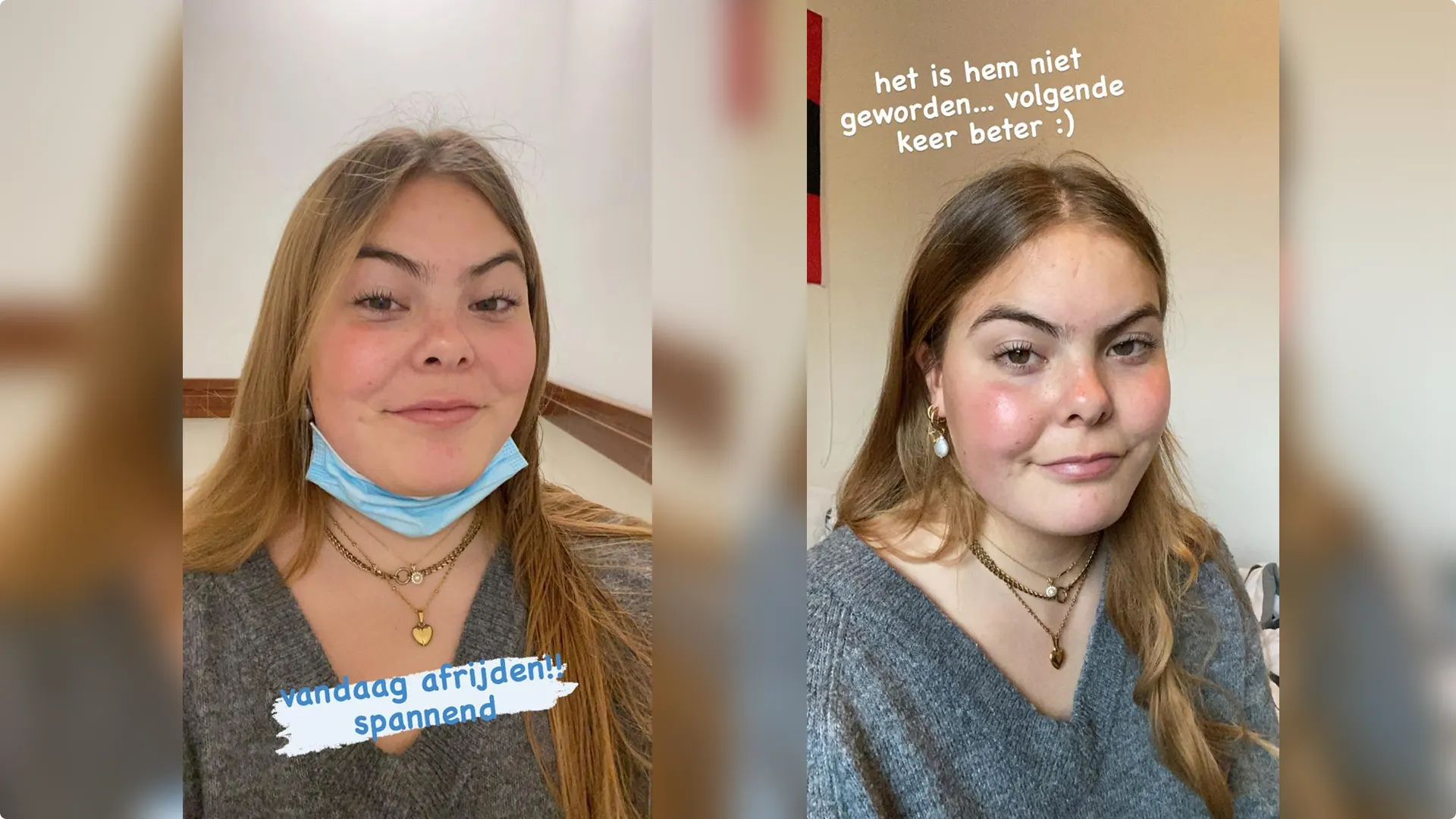 Eloise heeft het rijexamen namelijk niet gehaald. Ruim twee uur na de vrolijke foto, schrijft ze: "Het is 'em niet geworden... Volgende keer beter!" En zo is het!
