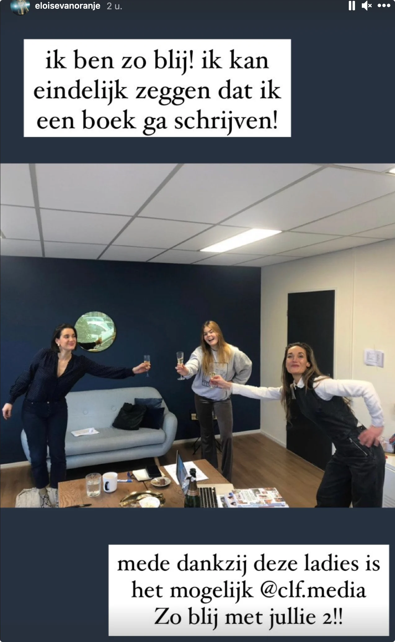 "Ik ben zo blij! Ik kan eindelijk zeggen dat ik een boek ga schrijven", aldus Eloise. "Ik ga jullie in het proces betrekken, dus houd mijn account in de gaten", belooft de gravin aan haar ruim 229.000 volgers.