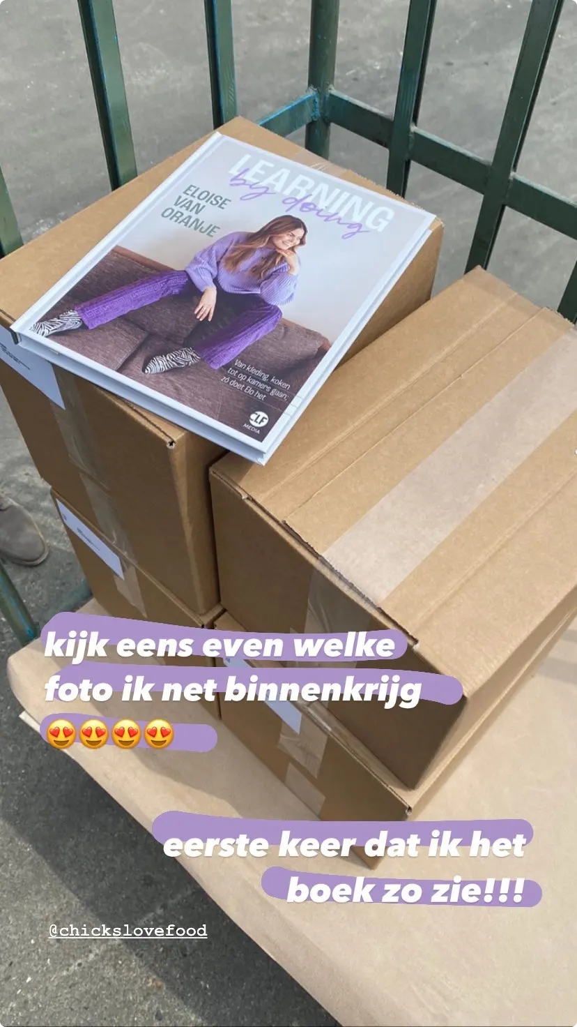 Op Instagram laat Eloise weten dat ze voor het eerst de cover van het boek gezien heeft. "Kijk eens even welke foto ik net binnenkrijg", schrijft zij op haar Stories. "Eerste keer dat ik het boek zo zie!!!"