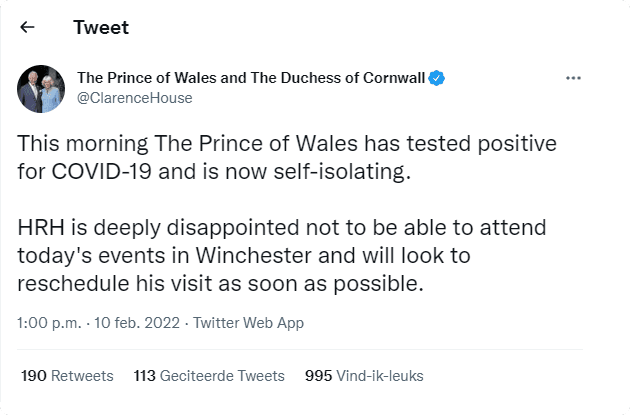 Voor Charles is het al de tweede keer dat hij corona heeft. In maart 2020 behoorde hij tot een van de eersten die positief testte. Hij had destijds "milde symptomen", maar kon vanuit huis nog wel doorwerken.