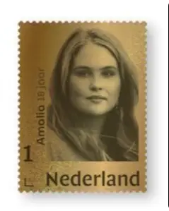 Prinses Amalia krijgt ter ere van haar achttiende verjaardag een 24-karaats gouden postzegel. Op de zegel staat een monochroom portret van de prinses dat is gemaakt tijdens Koningsdag 2021 in Eindhoven, zo maakte PostNL dinsdag bekend. De zegel is vanaf dinsdag te koop en kost 50 euro.