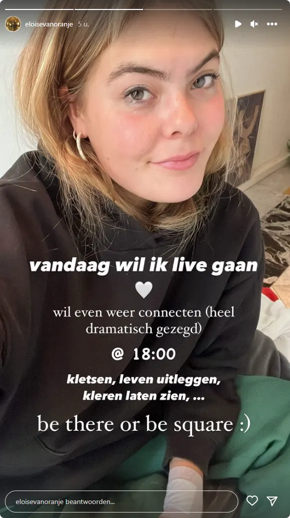 'Oeps', schrijft ze bij de video. Wat er precies gebeurd is laat ze nog niet weten. Zie de video bovenaan de pagina voor de beelden met de pleister. "Vandaag wil ik live gaan. Wil even weer connecten (heel dramatisch gezegd)", schrijft in een volgende story.