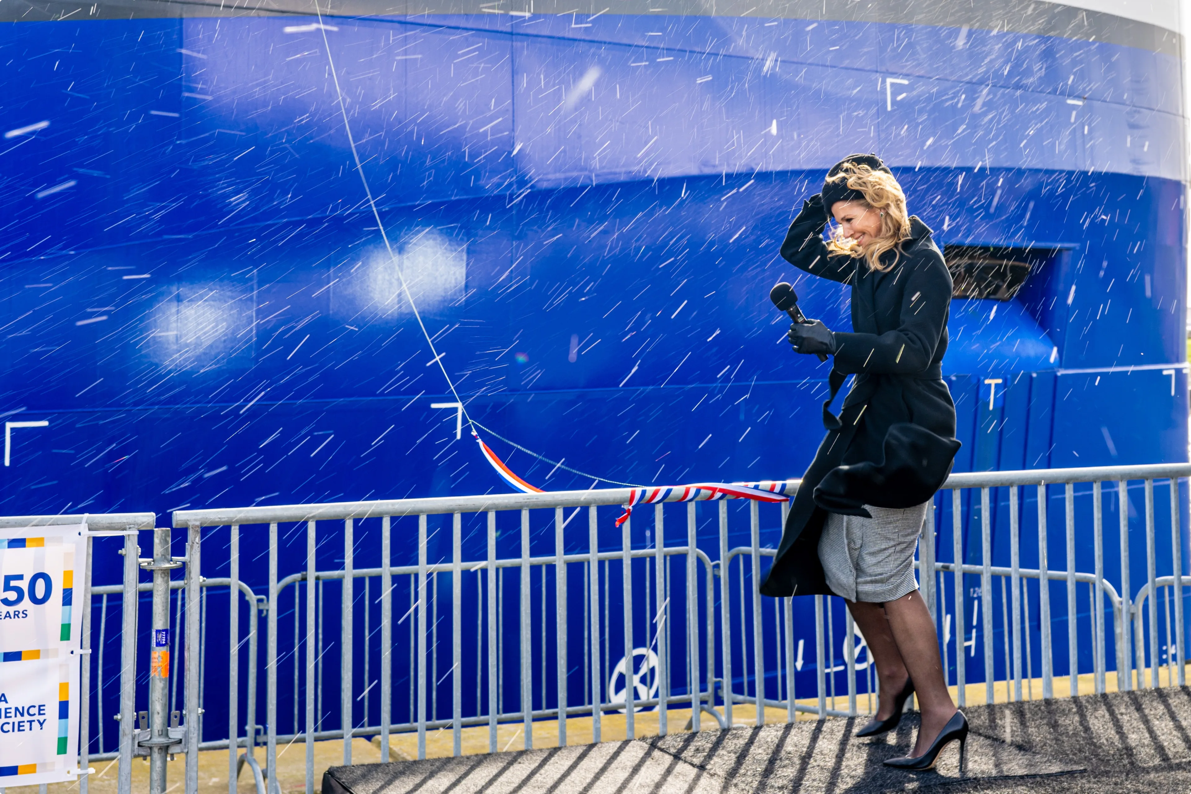 Speciaal voor de doopceremonie was het podium zo dicht mogelijk tegen een tent op de NIOZ-haven op het Waddeneiland geplaatst, zodat de koningin enigszins beschut stond tegen de wind. Desondanks moest zij gedurende de doop haar hoedje stevig vasthouden om wegwaaien te voorkomen.