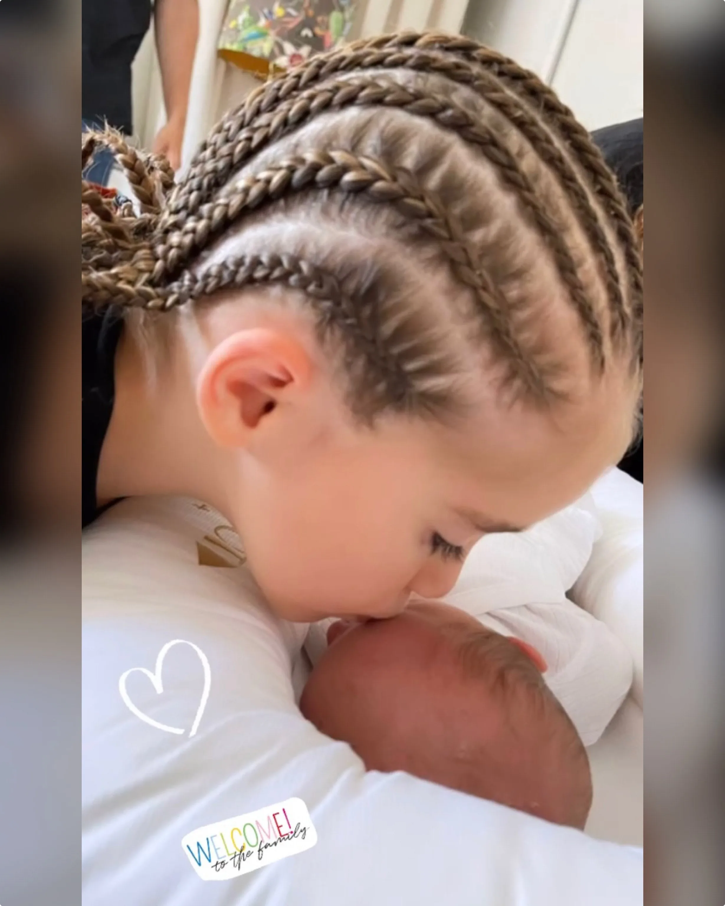 Grote zus Yolanthe deelde het nieuws in haar Stories op Instagram. Op de foto geeft de 5-jarige Xess Xava, de spruit van Yo, een kusje aan zijn nieuwe pasgeboren familielid. Zoet!