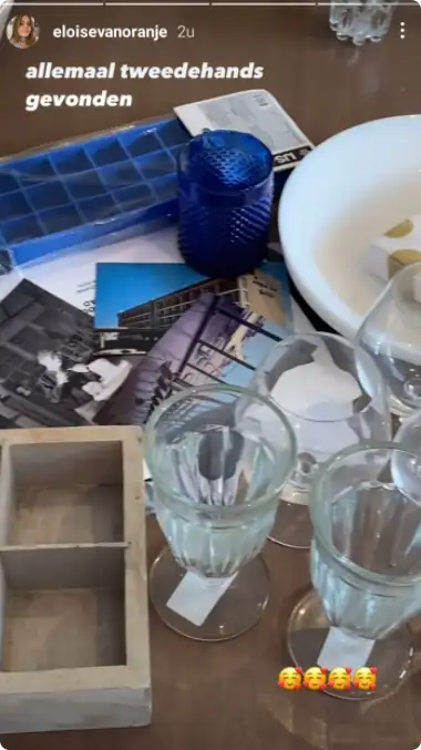 Even later laat ze zien welke spullen ze zoal in huis heeft. Ze schrijft erbij: "Allemaal tweedehands gevonden."
