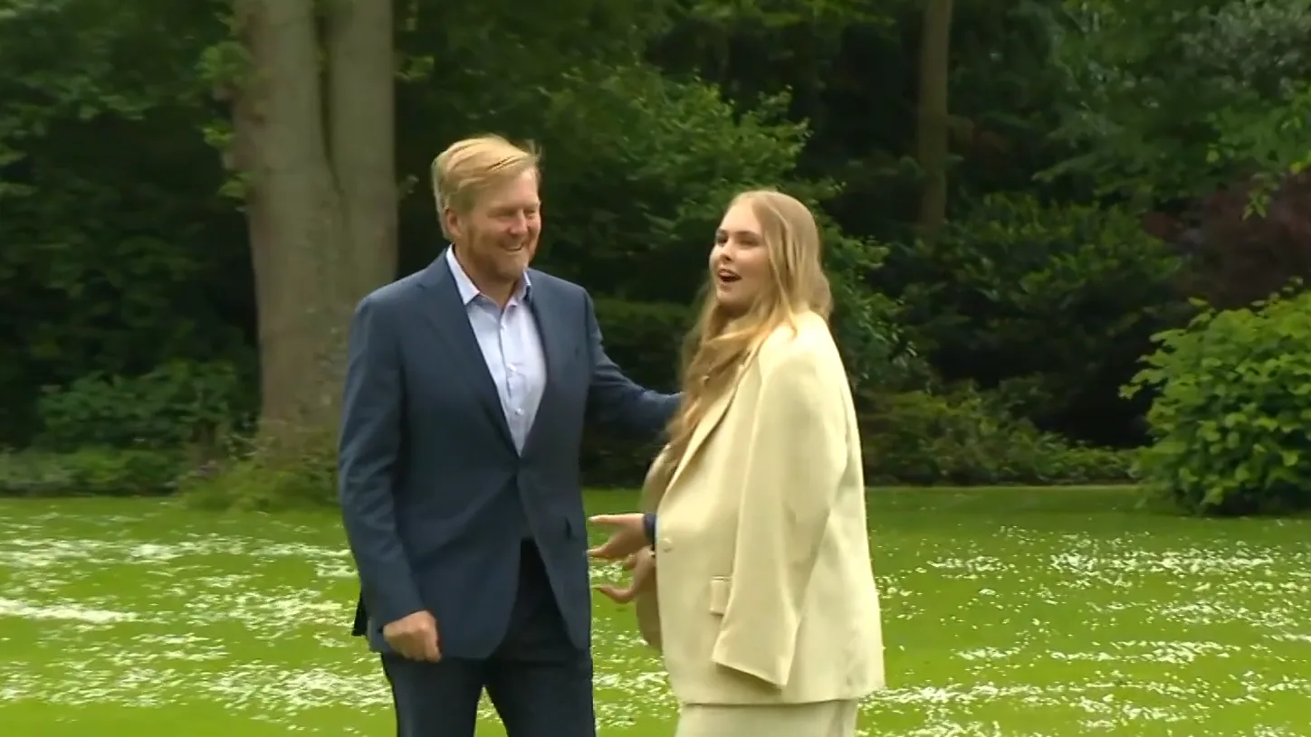 En de koning was goedgehumeurd en maakte zelfs nog een grapje met zijn oudste dochter Amalia (zie video).