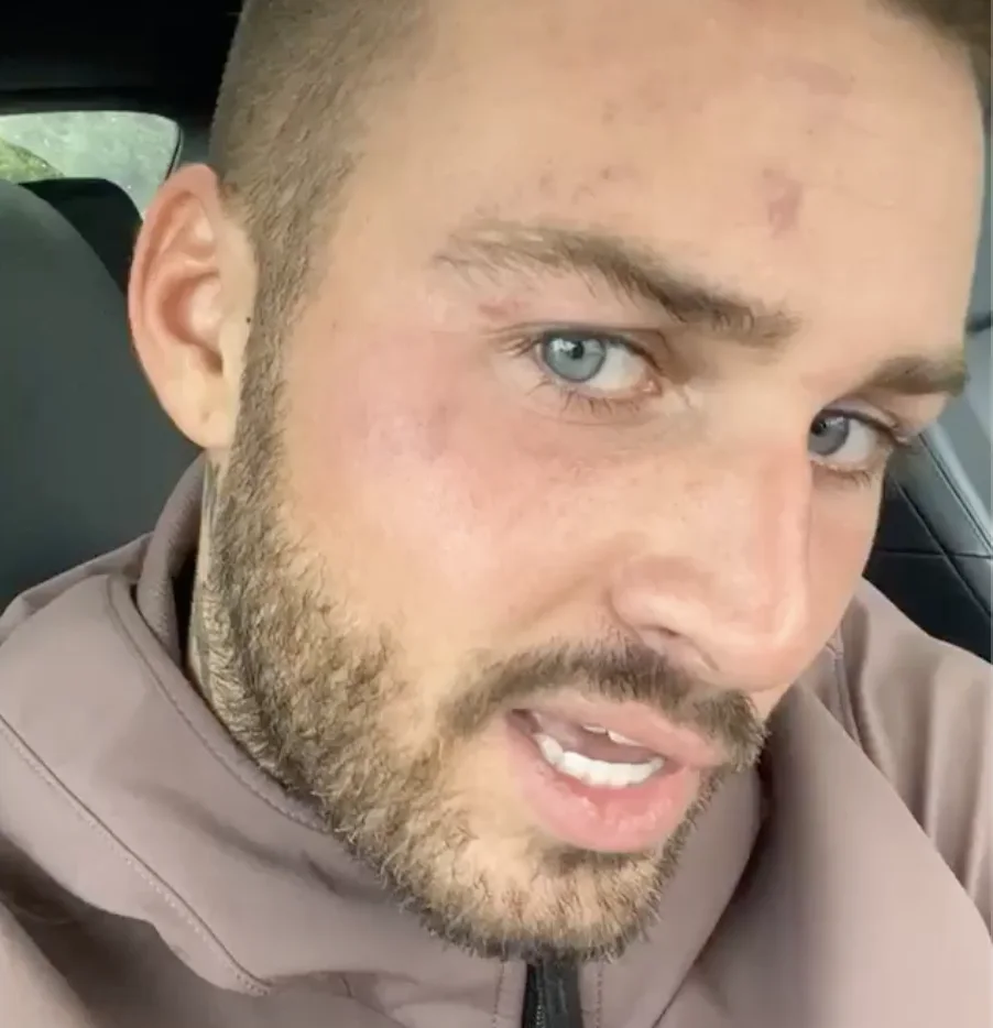 Dave Roelvink (26) heeft behoorlijk wat klappen gehad. Hij heeft een aantal blauwe plekken op zijn hoofd. Op social media legt hij uit dat 'zijn linker' nog wat oefening nodig heeft...