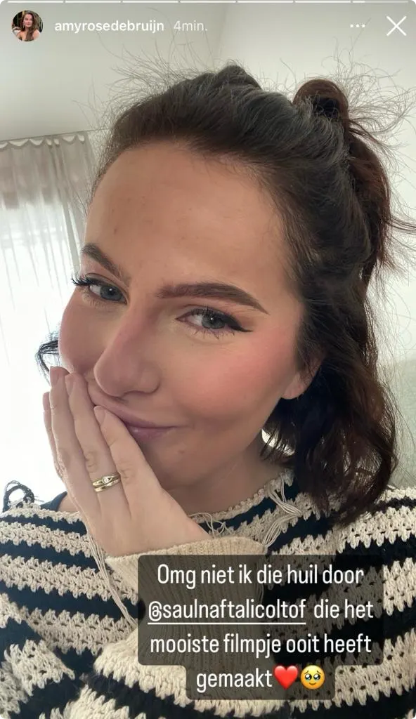Amy Rose, die zichtbaar geëmotioneerd is, vindt het enorm lief dat hij dit heeft gemaakt. "Omg, niet ik die huil door Saul, die het mooiste filmpje ooit heeft gemaakt."