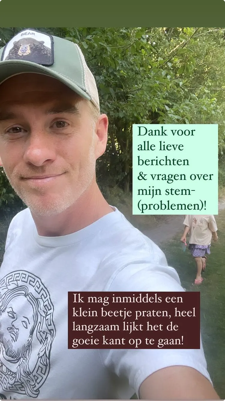 Op Instagram liet hij vorige maand het volgende weten: "De laatste tijd ben ik wat stiller hier. Beter gezegd, ben ik stil. Noodgewongen. Vanwege hardnekkige stembandproblemen ben ik de afgelopen maanden drie keer onder het mes geweest. (...) Na elke operatie moest ik een tijdje stemrust houden waardoor ik nu in totaal zo’n 75 dagen in stilte heb doorgebracht. (...) ook lastig qua werk. Een presentator zonder stem, daar heb je niet zoveel aan. En dus ben ik al een hele poos niet te horen op BNR Nieuwsradio en heb ik voor RTL B&B Vol Liefde (en enkele andere programma’s) niet kunnen opnemen.