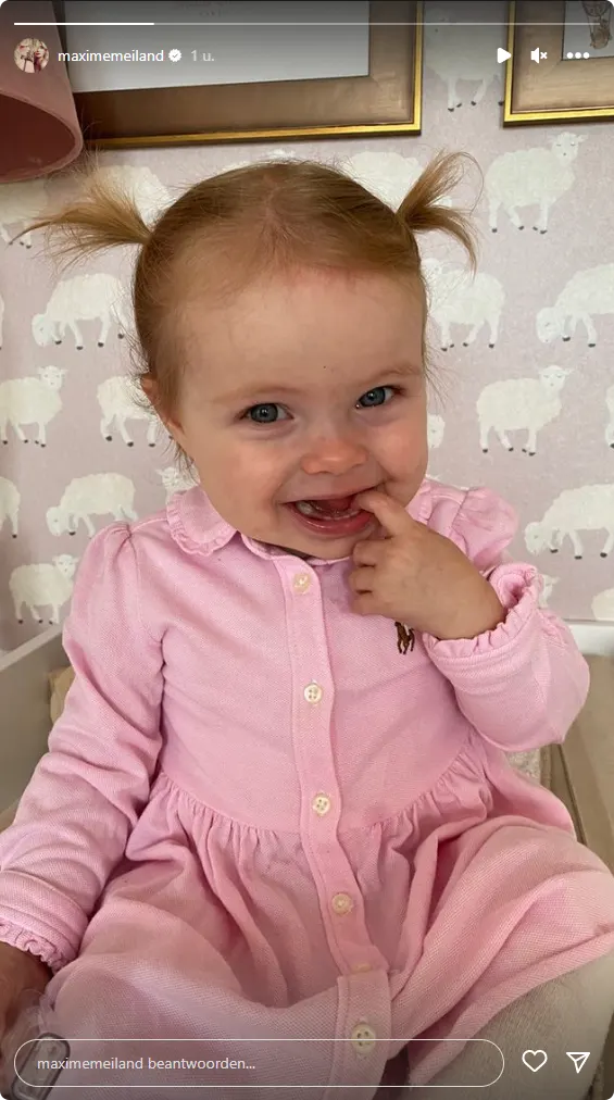 Op Instagram deelt Maxime een enige foto waarop Vivé te zien is met twee staartjes in haar haren. Zie onderstaande foto.