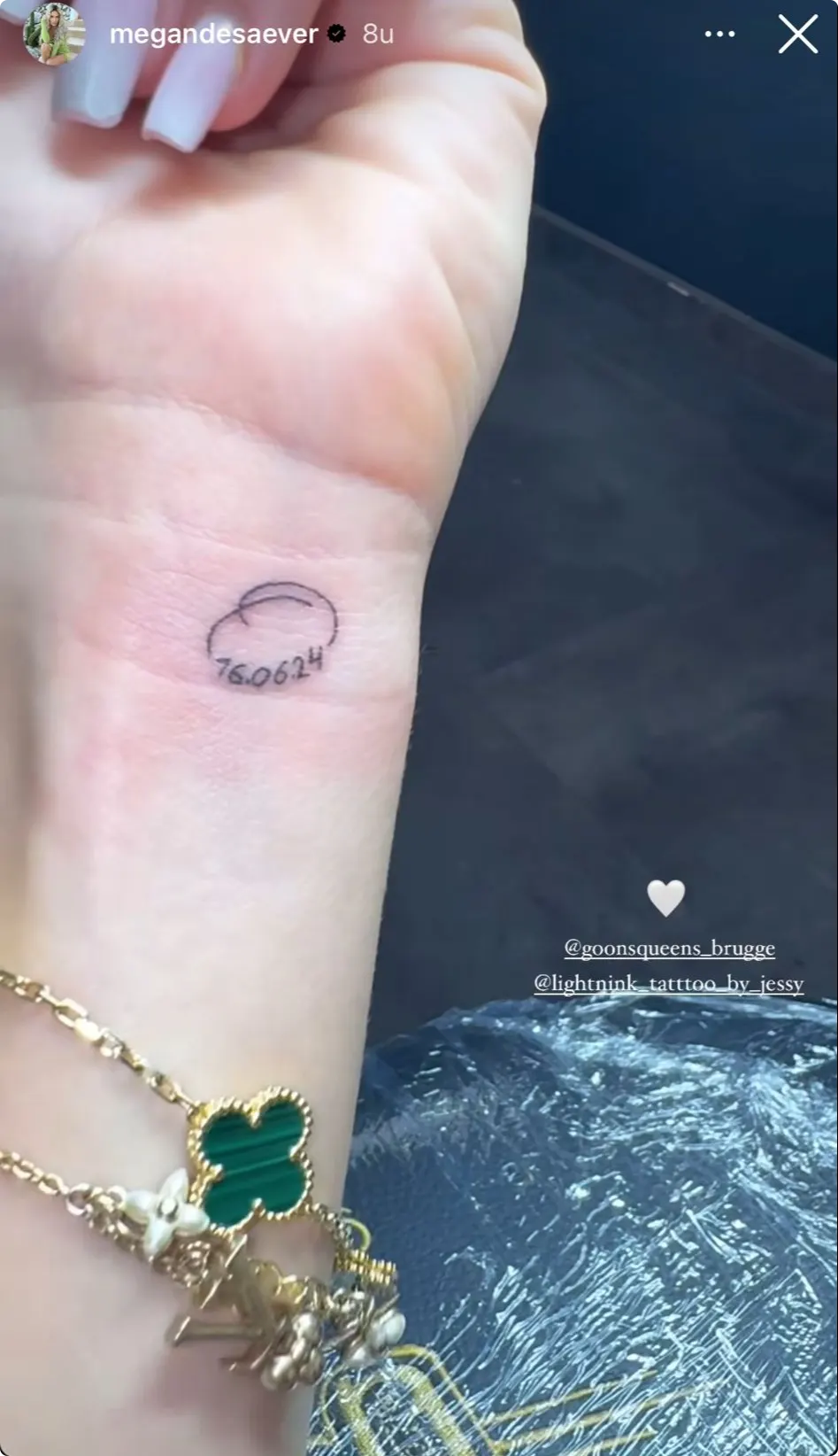 Daarom besluit ze om de liefde eeuwig vast te leggen op haar lichaam: ze heeft een tatoeage laten zetten van hun datum, 16 juni 2024. Bekijk het plaatje hieronder.