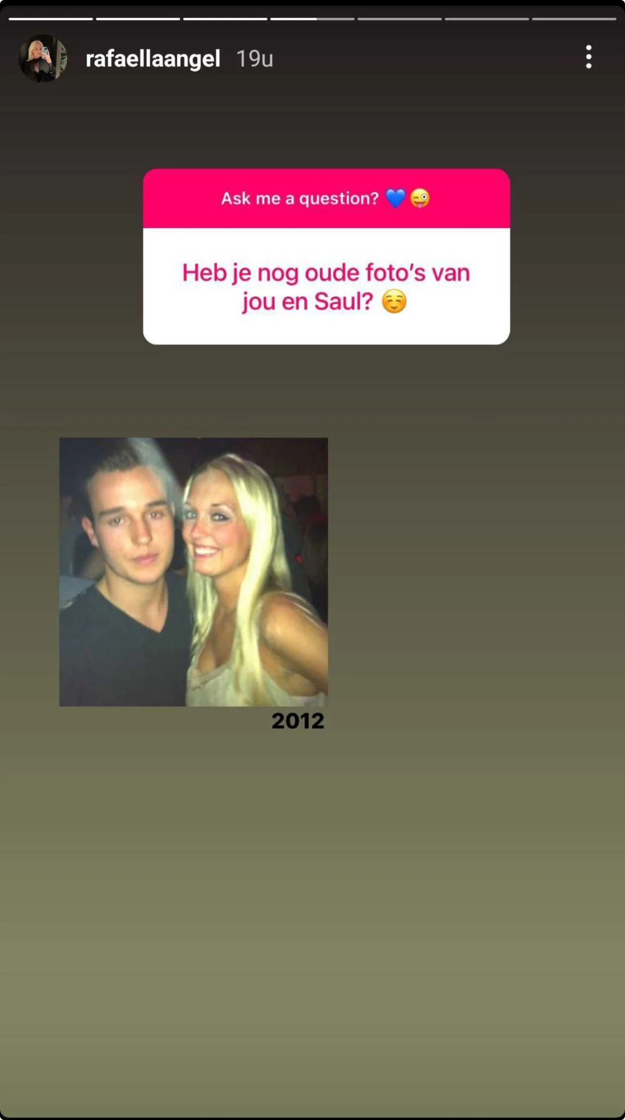 Hoewel Rafaëlla naar Zwitserland afreisde om het weer met Saul te proberen, besloten de twee toch vrienden te blijven. Tijdens een vragenrondje op Instagram vraagt iemand naar een oude foto van hen als stel. Ze plaatst er eentje uit 2012. Bekijk deze hieronder.