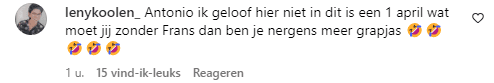 Fans van het realityduo hebben hun twijfels over de oprechtheid van de Instagram-post. Is dit nu een 1 aprilgrap of niet? Zo luidt het in de comments: ''Hahaha volgend jaar iets aannemelijker maken'' en ''Grapje toch? Jullie zijn zo leuk''. Ook zijn er bezorgde fans: ''Neeeee wat heftig. Sterkte'' en ''Wat jammer, ik keek altijd naar het programma'', valt er te lezen.