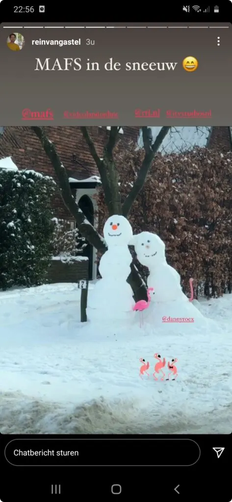 Daarnaast tagt Rein zijn tv-man constant op Instagram. Zo tagt hij Danny in de sneeuwpop hieronder.