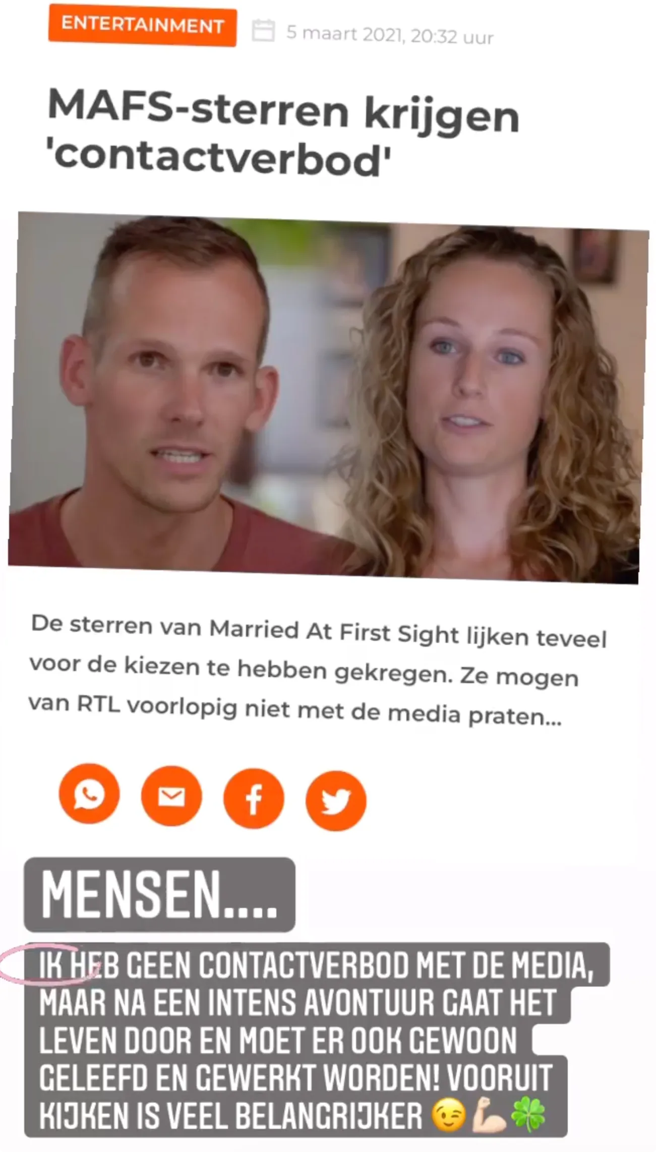 Lars schrijft in zijn Instagram Stories dat het zijn eigen keus is om niet met de media te praten over zijn MAFS-deelname. "Maar na een intens avontuur gaat het leven door en moet er ook gewoon geleefd en gewerkt worden! Vooruitkijken is veel belangrijker."