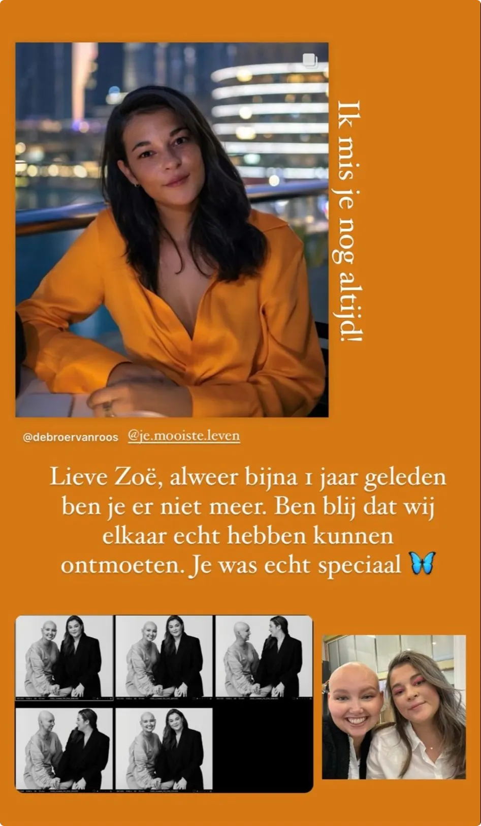 Eva en Zoë leerden elkaar kennen door hun deelname aan het ontroerende programma. Na de uitzending laat Eva van zich horen. "Lieve Zoë, alweer bijna één jaar geleden ben je er niet meer. Ben blij dat we elkaar echt hebben kunnen ontmoeten. Je was echt speciaal", schrijft ze.