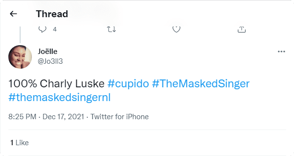 De Giraffe beet vrijdagavond het spits af in de finale van The Masked Singer, maar werd gevolgd door Cupido. En op Twitter is de nauwlettende kijker vrijwel unaniem eens wie er in dít pak zit!