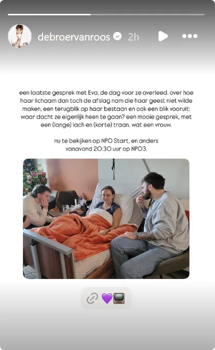 Ook op de Instagrampagina van Eva, die wordt beheerd door haar familie, wordt stilgestaan bij de uitzending. "Het is nu twee maanden geleden sinds de uitvaart van onze lieve Eva. We missen Eva elke dag", schrijft de familie. "We vinden het mooi om te zien en te lezen dat Eva zoveel teweeg heeft gebracht."