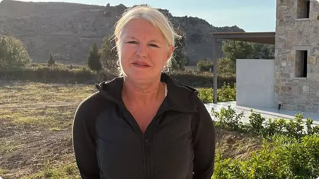 De Limburgse Ingrid is 61 jaar en voelt zich zó thuis op Lesbos, dat ze haar B&B Dutch Dream heeft genoemd. Ze verhuurt een appartement met een prachtig uitzicht over de Egeïsche Zee.