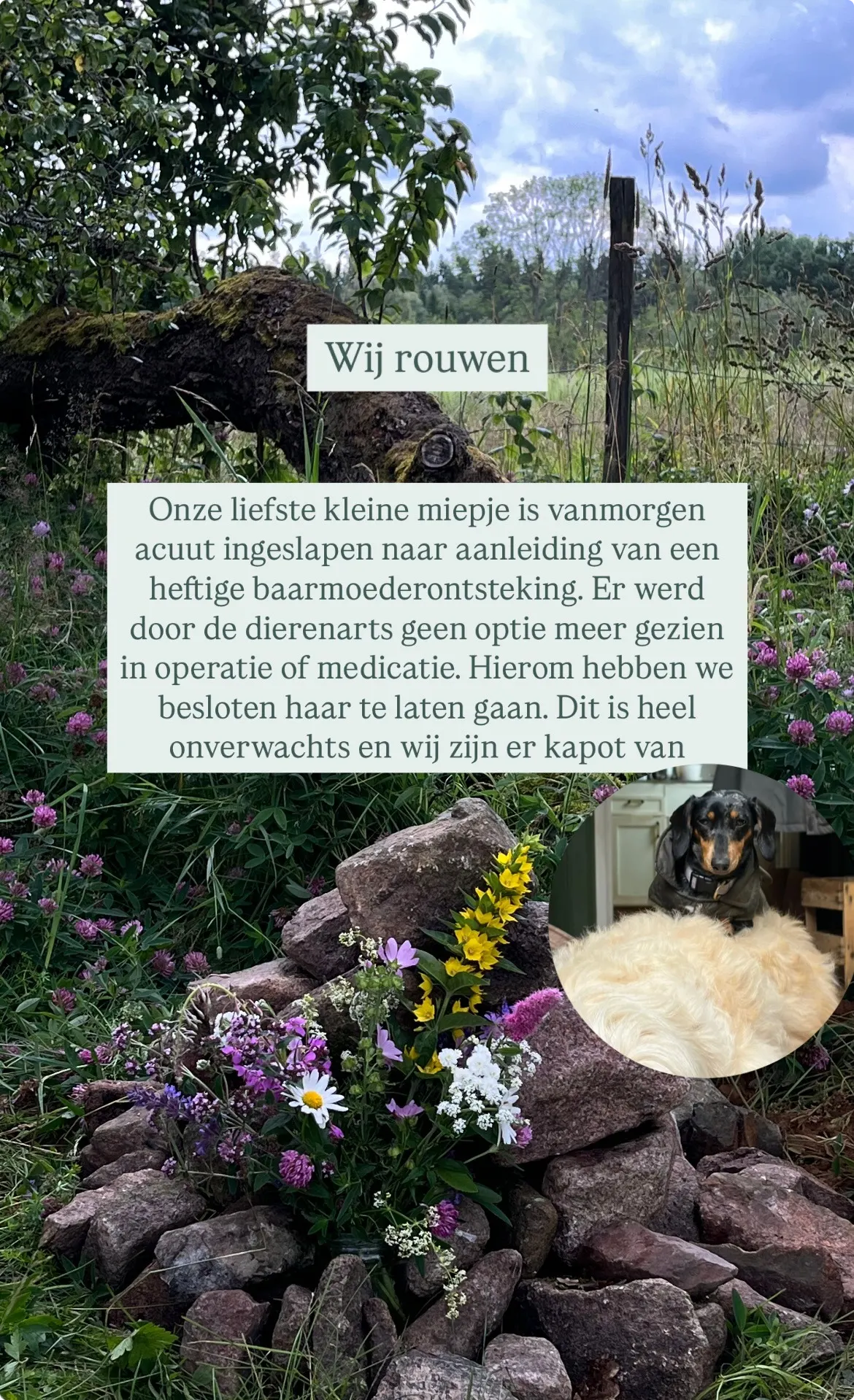 B&B-eigenaar Bram Eijgenhuijsen, bekend van zijn deelname aan B&B Vol Liefde, en zijn vriendin Esra delen verdrietig nieuws. Ze hebben plotseling afscheid moeten nemen van één van hun geliefde hondjes, zo maakt Esra bekend op Instagram.