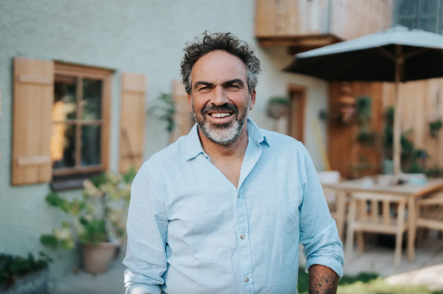 Klaas woont in Weissenbach am Lech in Oostenrijk, waar hij twee vakantiewoningen in een charmante oude boerderij verhuurt. Als 53-jarige vader van drie kinderen combineert hij dit met zijn werk als timmerman en af en toe als berggids.