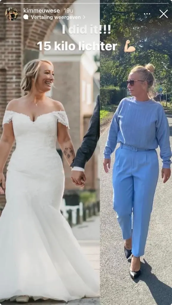 Op haar Instagram Stories plaatst de realityster een foto van haar in haar bruidsjurk en een foto van nu. Hier is haar transformatie goed te zien. Bij de foto schrijft ze trots: "I did it! 15 kilo lichter!"