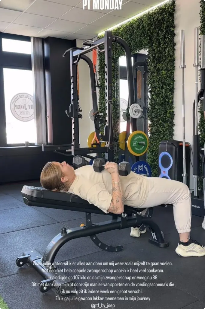 Ze vertelt deze week openhartig op Instagram dat ze er alles aan gaat doen "om weer zichzelf te voelen". "Ik eindigde met 107 kilo na mijn zwangerschap en weeg nu 88 kilo", deelt Jaydi, die haar personal trainer enorm dankbaar is. "Door zijn manier van sporten en de voedingsschema's die ik nu volg, zie ik iedere week een groot verschil." Ze belooft tot slot om haar volgers mee te nemen in haar "journey" (zie onderstaande foto's).