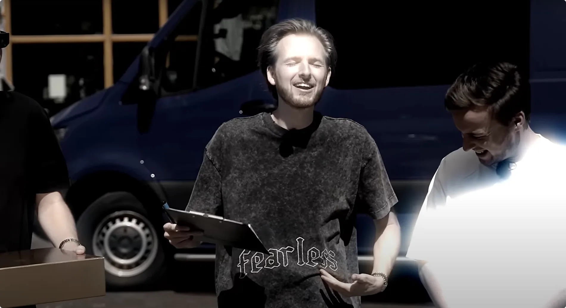 In de video gaan Milo, Koen, Robbie, Matthy en Raoul langs bij fans om een mystery box te bezorgen. Daarbij moeten ze aan een aantal opdrachten voldoen; de groep wordt in tweeën gesplitst, die het tegen elkaar opnemen. "Maar Koen, voor jou is dit toch een eitje? Jij bent toch fearless", zegt Raoul, die hint op Koens zijn shirt, die je in de afbeelding hieronder ziet.
