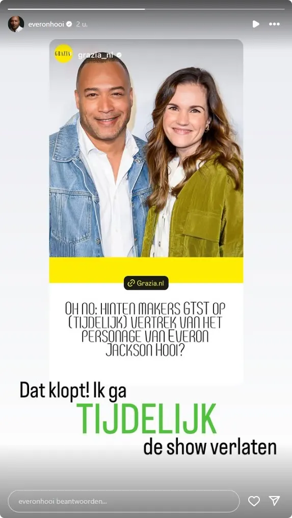 Everon reageert dinsdag op een artikel over zijn vertrek het volgende: "Dat klopt! Ik ga tijdelijk de show verlaten". Hij schrijft tijdelijk duidelijk in het groen, dus voor fans geen zorgen hij komt sowieso nog terug.