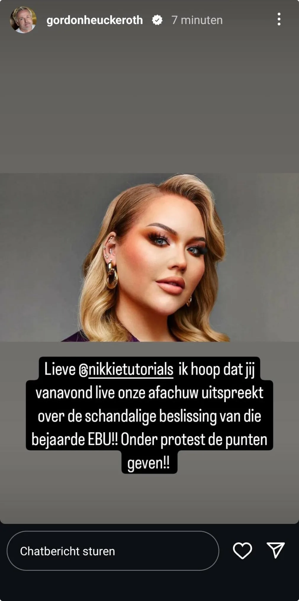 Hij deelt in zijn Instagram Stories een foto van hem samen met Joost en Appie Musa en plaatst daarbij een gebroken hartje. Hiermee laat hij weten erg bedroefd te zijn door het schokkende nieuws dat de EBU bekend heeft gemaakt.