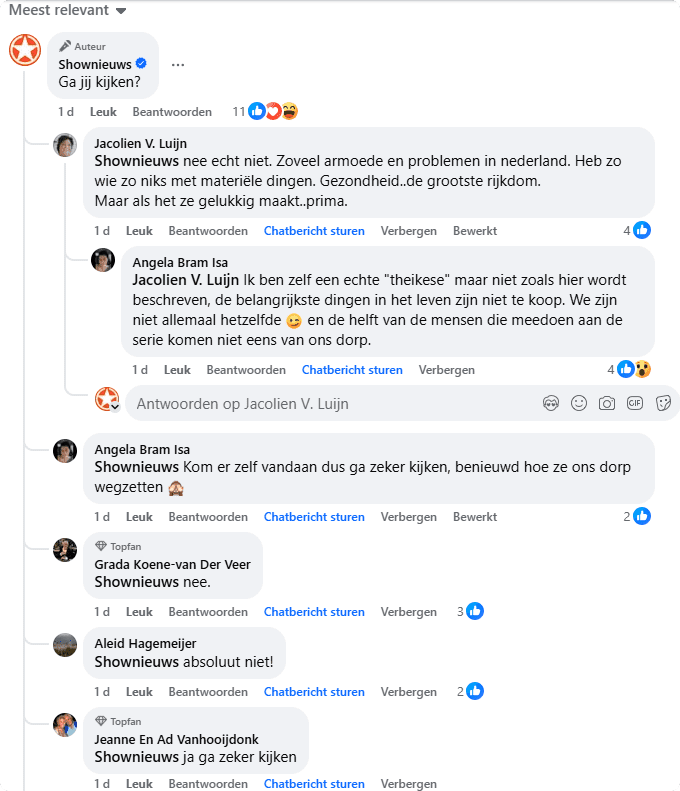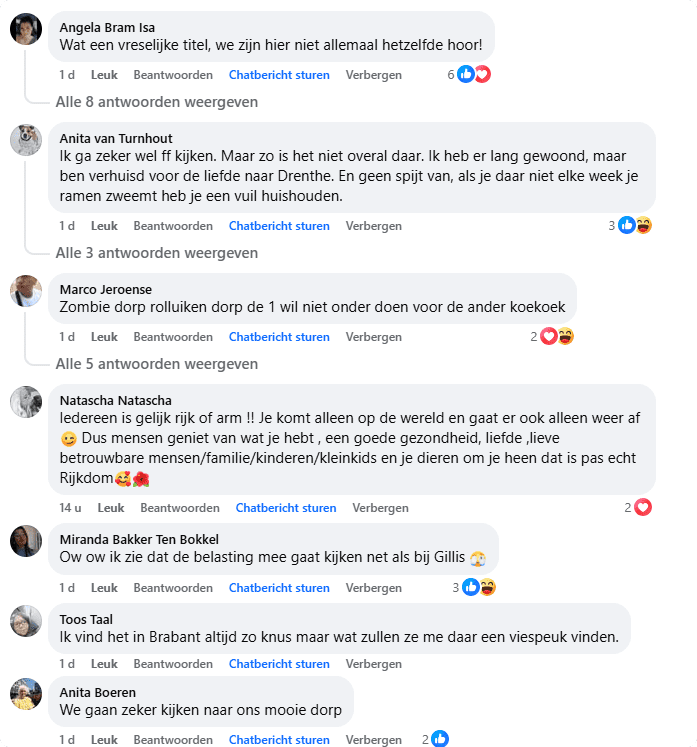 Andere kijkers kunnen niet wachten en schrijven bijvoorbeeld: "We gaan zeker kijken naar ons mooie dorp." Een andere kijker deelt: "Dit is weer iets voor ons!" Iemand anders laat weten: "Ben benieuwd!"